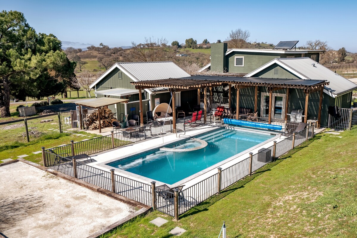 Paso RoblesWelcome to Harvest Ridge Ranch, a 22-acre working ranch complete with a 3000+ sf, 5B/4BA farmhouse, live animals working gardens. Located just minutes from award-winning wineries downtown Paso, this fully gated property showcases gorgeous vistas, plenty of space for large groups a fantastic wine country vibe.